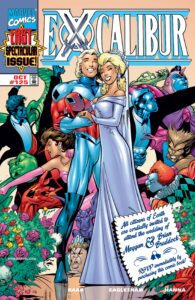 On this our final week, we’ve got a wedding we don’t love concluding a comic book series we do love, in sickness and in health, till death do us part… And in honor of this mess of mixed feelings, we’re doing the only appropriate thing, which is hold an Irish Wake – a celebration of life over the open casket of our beloved Excalibur. To that end, our regular discussion of the issue will be augmented with commemorations of the deceased from friends new and old.